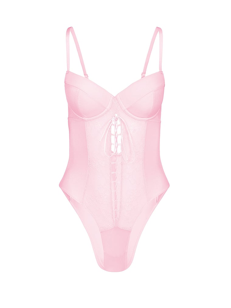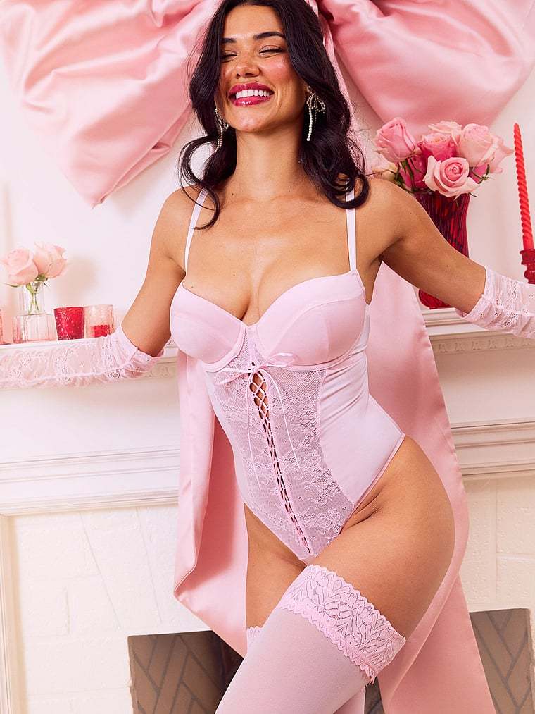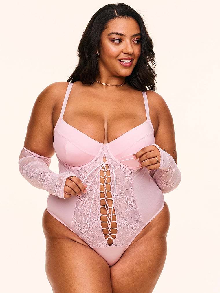 This lingerie set is made of sexy, soft, and comfortable lace. The underwired, contour demi cups will give you a little lift, and the lace-up detail at the front is super sexy. Complete the look with the matching lace gloves, and you'll be ready for a hot night of fun.