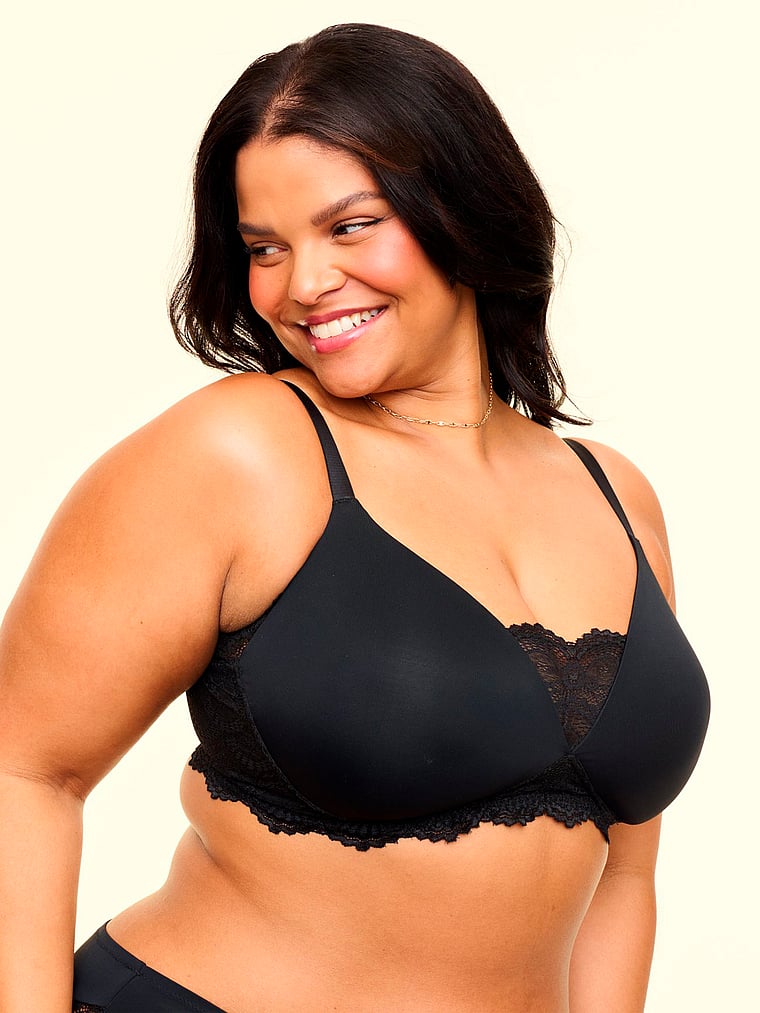 Underwire-free support? Yes, please. This wireless style offers all-day comfort with contour plunge cups, lace wings for underarm smoothing, and a fully adjustable fit.