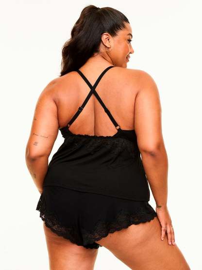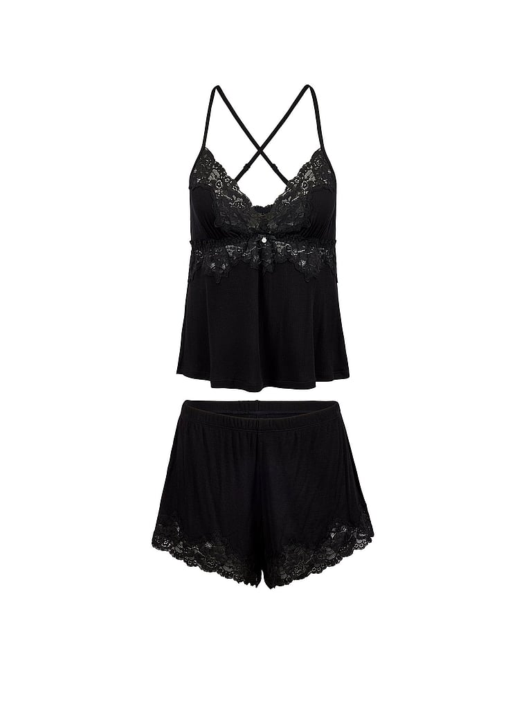 This set is ideal for a night in, thanks to its pretty lace detailing and comfortable feel.