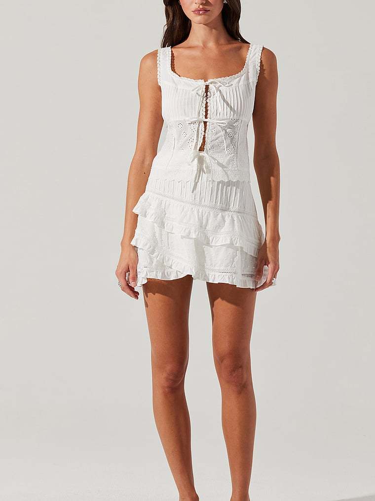 Best dressed at the farmer’s market (and for the rest of the summer, really): Eyelet trim and sweet, self-tie closures add a dainty finish to this whimsical style that pairs perfectly with the Kensley Skirt and your favorite fresh-cut flowers.
