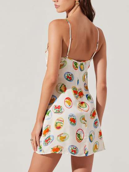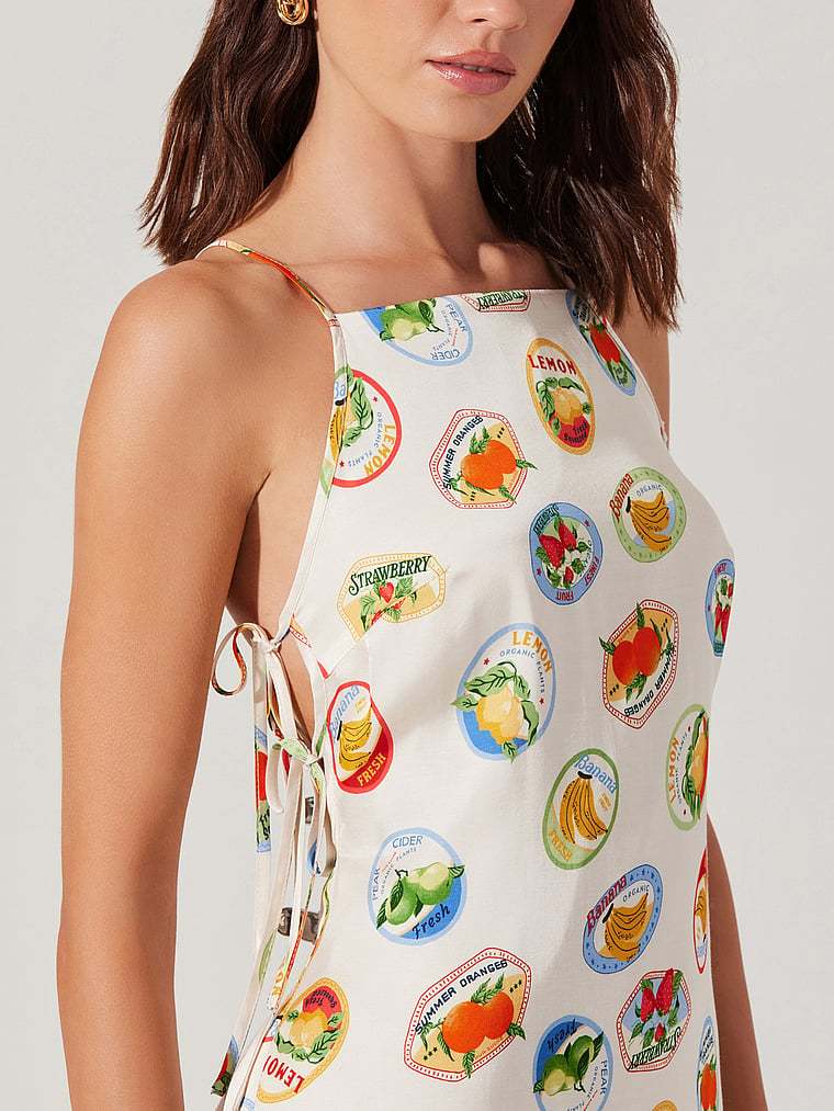 Summer’s top pick? This sweet, sheath mini Dress with side-tie details and fruity fresh finishes.