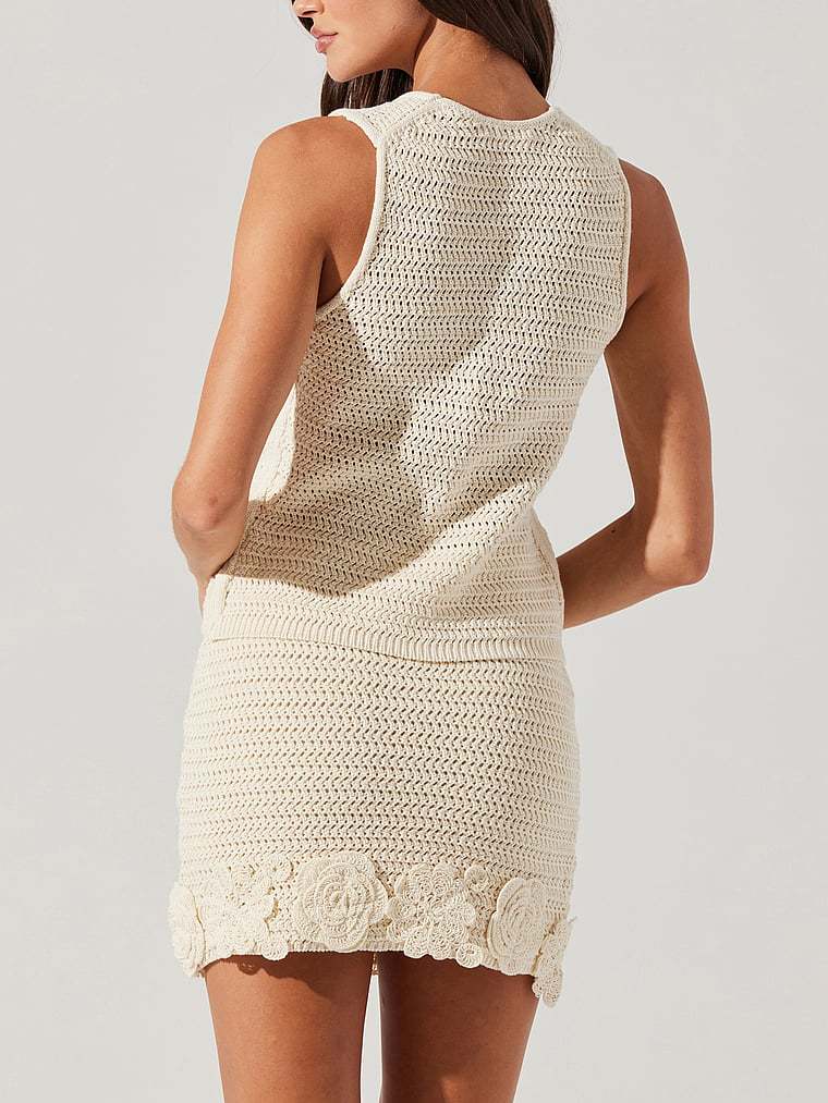Cutout details add a flirty finish to this crochet Vest that’s crafted from a summer-ready, stretch cotton that hugs your curves. Pair with the Taimi Skirt for a coordinated, beachside look.