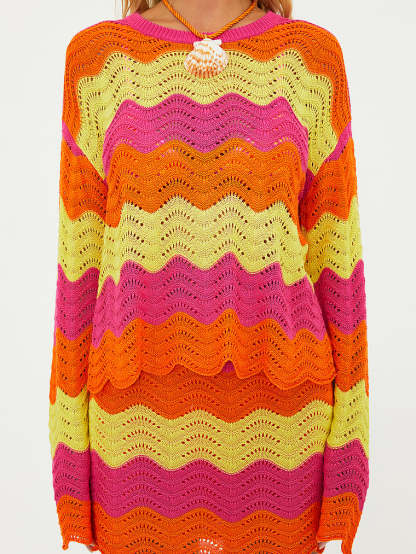 You'll wear this knit Skirt all summer long, thanks to its colorblocked motif and scalloped detailing