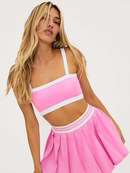 With a cropped length and contrast trim, this sports bra-inspired Top looks good on and off the court.