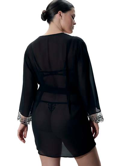 Refined glamour. This Kimono style offers a fluid drape for an elegant, intimate feel. Featuring intricate floral embroidery and a tie belt crafted from recycled materials.