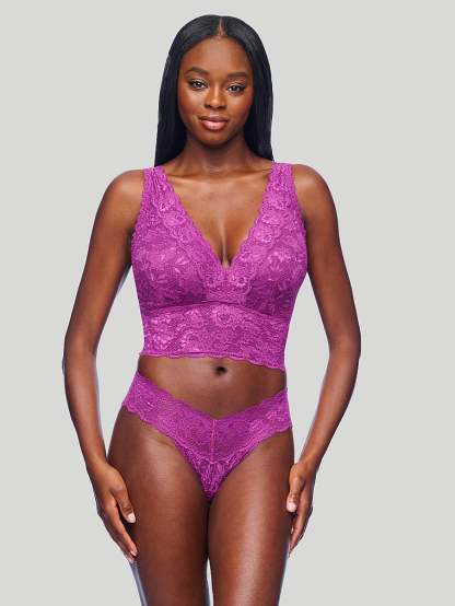 This lace-adorned, longline Bralette gets a supportive update with power mesh. Non-padded cups and a plunging neckline add drama to the look.
