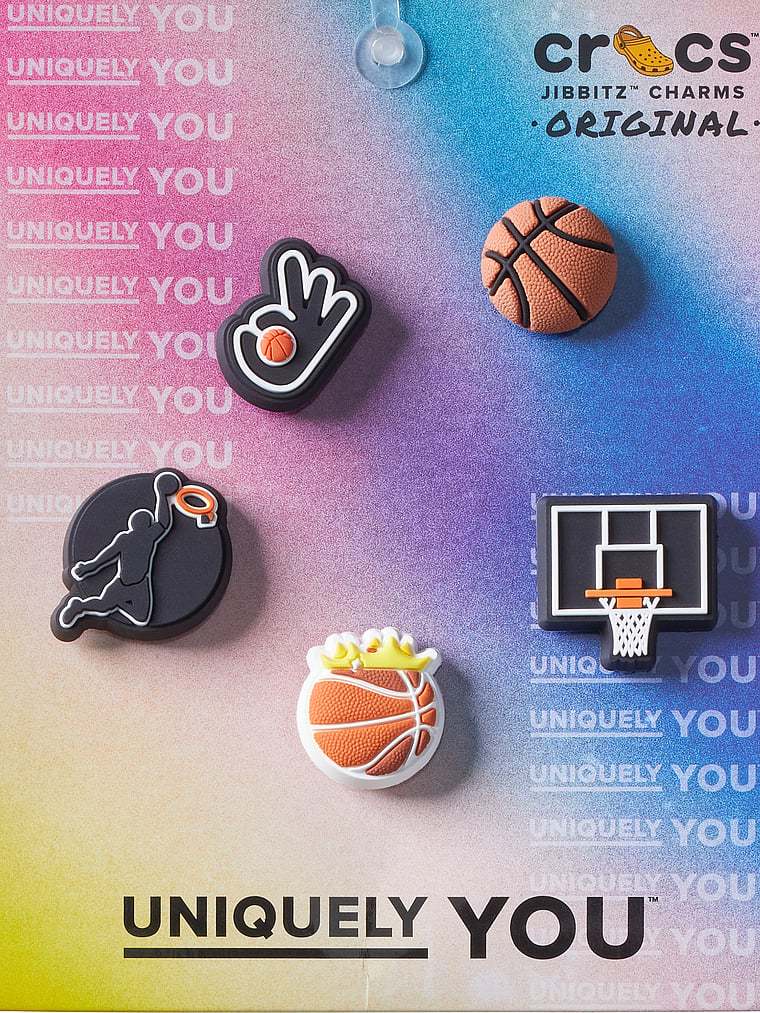Pop some personality into your shoes with these Basketball Team 5 Pack Jibbitz™ charms. They’re the perfect addition to your favorite pairs of clogs, slides, and more.