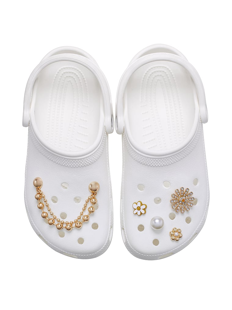 Pop some personality into your shoes with these Pretty in Gold 5 Pack Jibbitz™ charms. They’re the perfect addition to your favorite pairs of clogs, slides, and more.