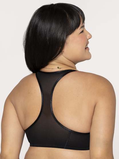 Curvy Couture Sheer Mesh Front-Close Racerback T-Shirt Bra
