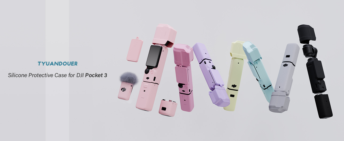 PACKING LIST FOR POCKET 3 - Includes Pocket 3 Camera Body Protector*1, Lens Protector*1, Screen Protector*1, 1/4 Thread Handle Protector*1, Battery Handle Protector*1, MIC Protector*1, Anti-lost Rope*1 (the detachable anti-loss rope is hung on between the body protector and screen protector to prevent loss). This Pocket 3 silicone case can provide fully protection for every accessory of the camera. (NOT include camera and other accessories)