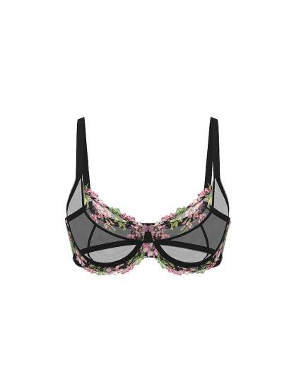 Too pretty to keep under wraps. Ornately detailed with dreamy, European-designed wisteria embroidery on sheer tulle mesh, this unlined Bra features our signature 3-piece cup design to ensure a supportive and comfortable fit, perfect for larger busts.