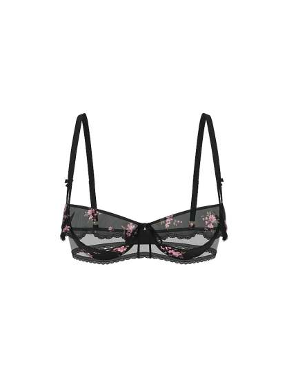 Dream Angels Wicked Unlined Sheer Flutter Open-Cup Balconette Bra Mesh