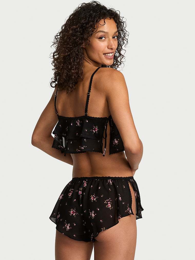 Tiers of sheer chiffon cascade from delicate straps to top off this romantic, flower-dotted Set. Fluttery Shorts with sexy side slits make the perfect match.