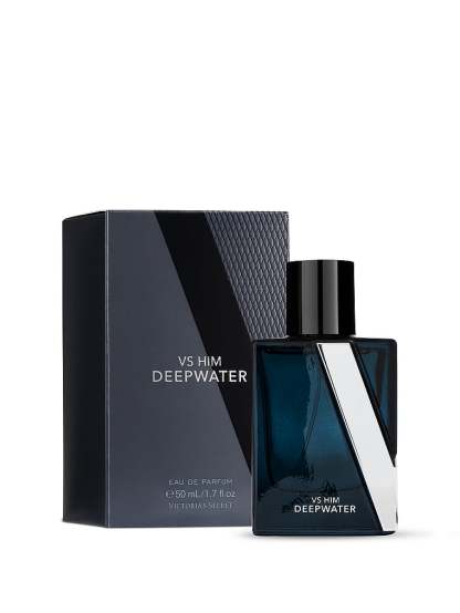 Our newest scent for him.Hypnotic and fresh, VS Him Deepwater opens with bright notes of frozen bergamot mixed with aromatic fresh water and blue sage. All wrapped in a deep, comforting layer of woody cedar leaf.