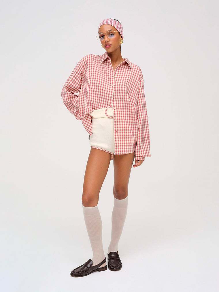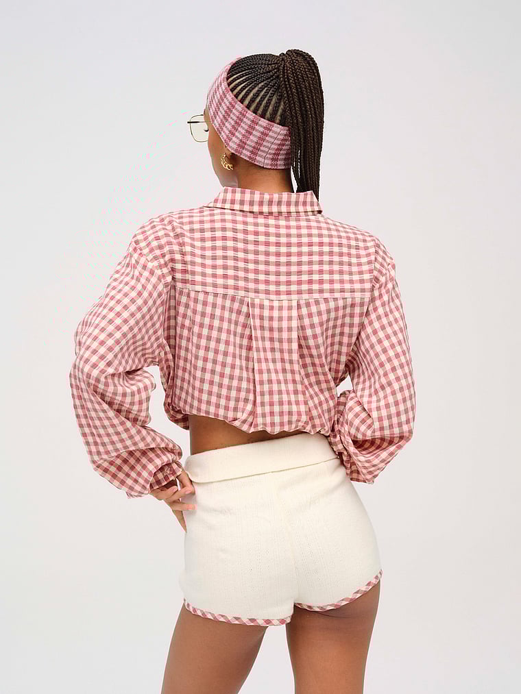 A cream gingham trim adds vintage flair to these micro Shorts. They're high-waisted, with an adjustable chunky belt and cheeky fit.