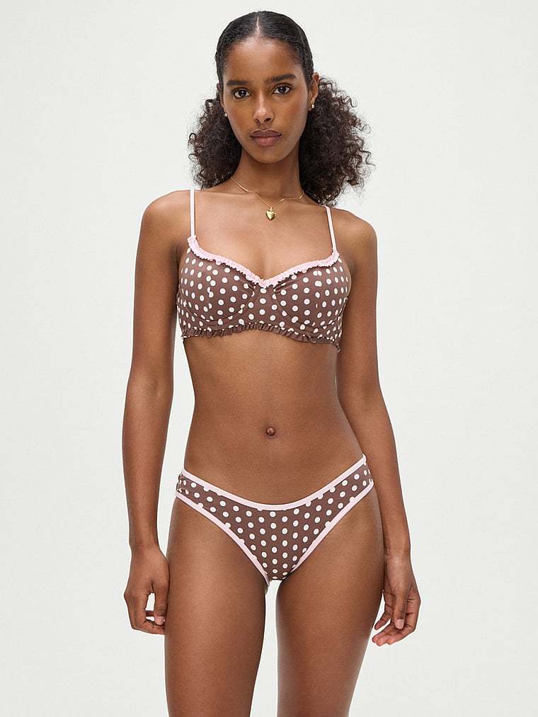 Your next getaway isn’t complete without this sweet Bikini Top. The balconette style features a cute polka dot pattern and special ruffle details. By Frankies Bikinis.