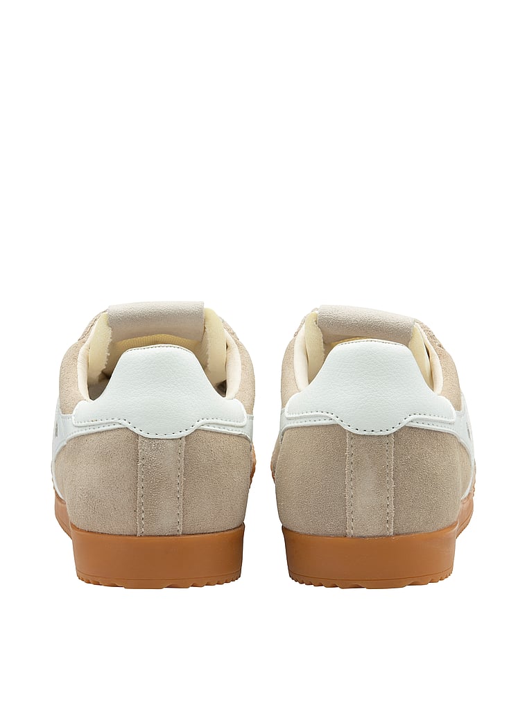 A multi-purpose training Shoe with an old-school gum sole (in just the right vintage tone), this pair is reminiscent of days in the gym, while saturated shades give a modern spin. A nod to Gola’s flagship Harrier style, an additional heel tab panel adds an extra pop of color.