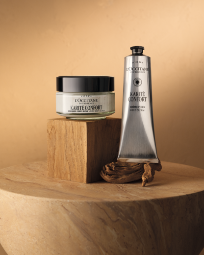 Karité Confort (Shea Butter) Foot Cream is our best foot cream for dry feet, enveloping the skin in a comforting veil of moisture. This luxurious cream softens and nourishes dry ro very dry skin, leaving feet beautifully smoother, supple, comfortable and hydrated. Its quickly absorbed, non-greasy texture transforms daily foot care into a moment of pure indulgence, helping soothe discomfort and maintaining the natural suppleness of your feet.