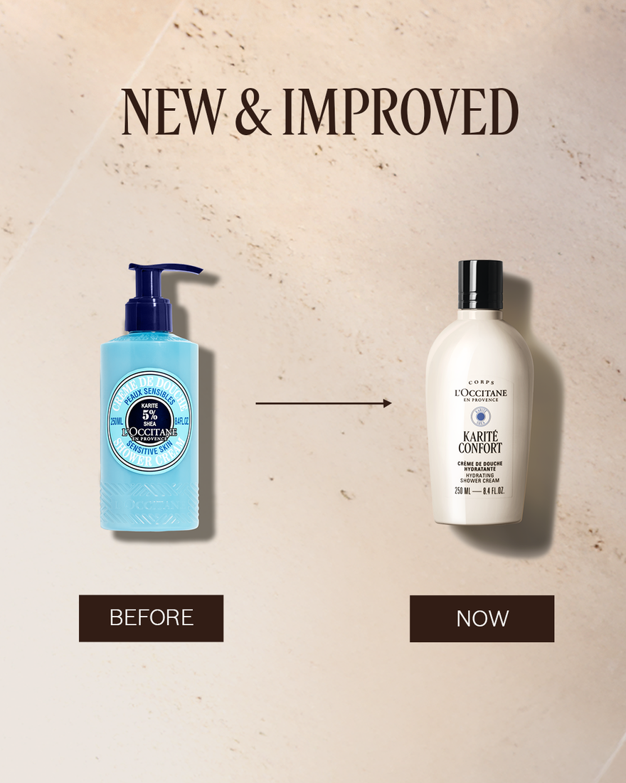 The Karité Confort Hydrating Shower Cream (formerly known as Shea Sensitive Skin Shower Cream) is one of our best moisturizing shower creams for a gentle cleanse and nourishing care. Its creamy foam delicately cleanses, helps soothe the feeling of discomfort, moisturizes.