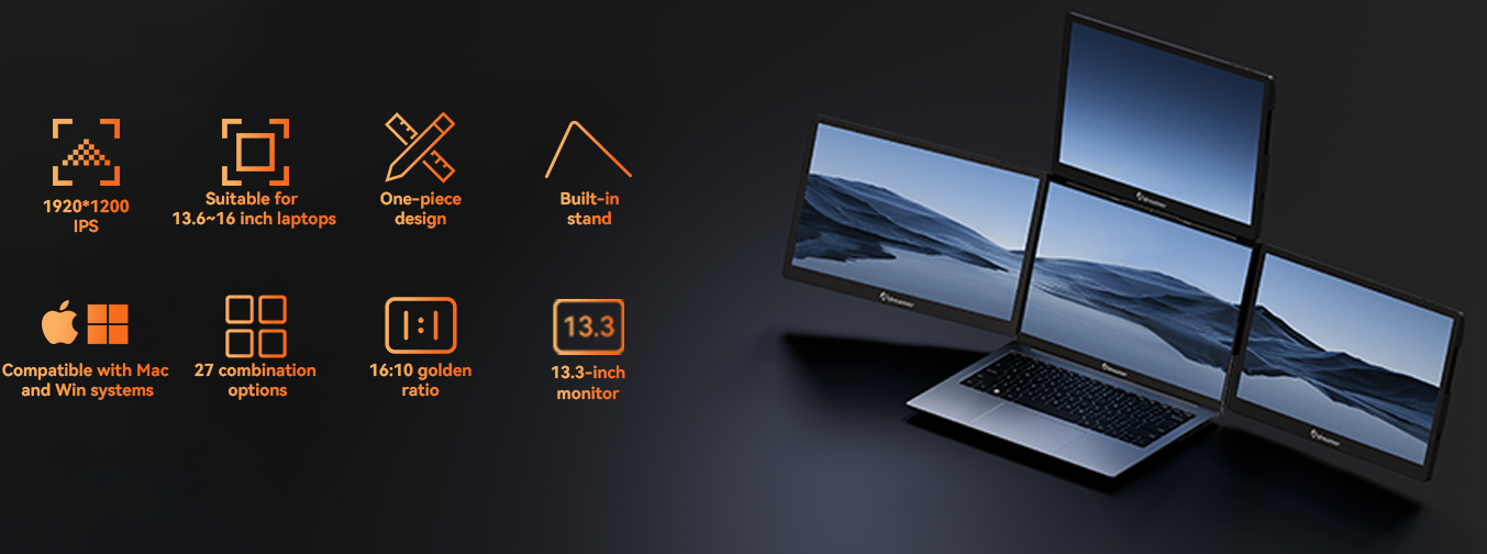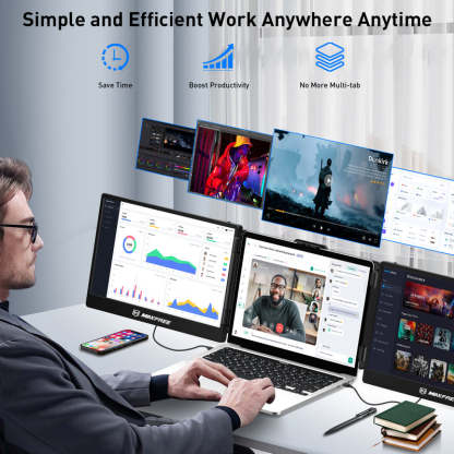 Experience a seamless blend of performance and portability with our cutting-edge laptop screen extenders. Unlock a world of multitasking possibilities. Whether you're a remote professional, gamer, or content creator, our innovative travel monitor for laptop will redefine how you approach tasks, boosting your efficiency by up to 200%.