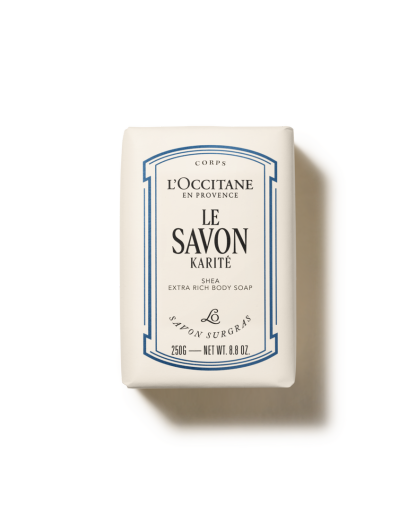 Enriched with Shea Butter, the Le Savon Shea Extra Rich Body Soap (formerly known as Shea Milk Sensitive Skin Extra Rich Soap) is one of our best rich body soaps for a gentle yet luxurious cleanse. Suitable for sensitive skin, it delicately cleanses while enveloping the skin in comfort. The creamy heart of Shea, with warm vanilla facets, unfolds into a floral bouquet with subtle notes of mimosa—like the soft, comforting embrace of winter in Provence.