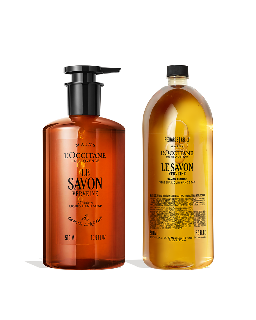 Le Savon Verbena Liquid Hand Soap (500ML ; 16.9 FL. OZ.) + Refill Size