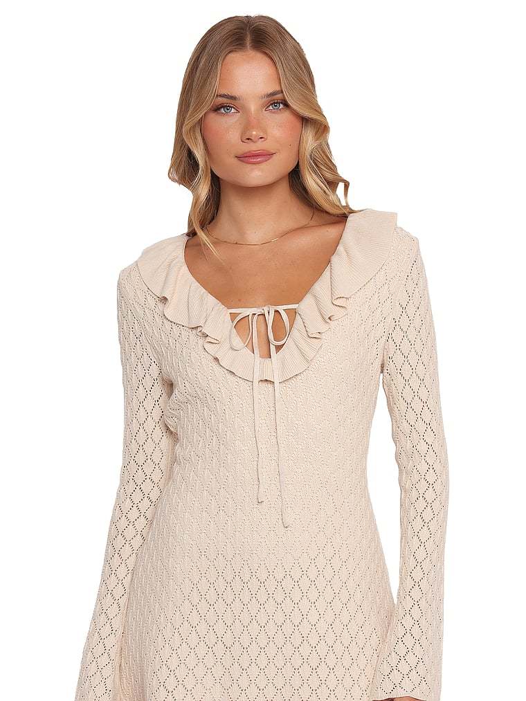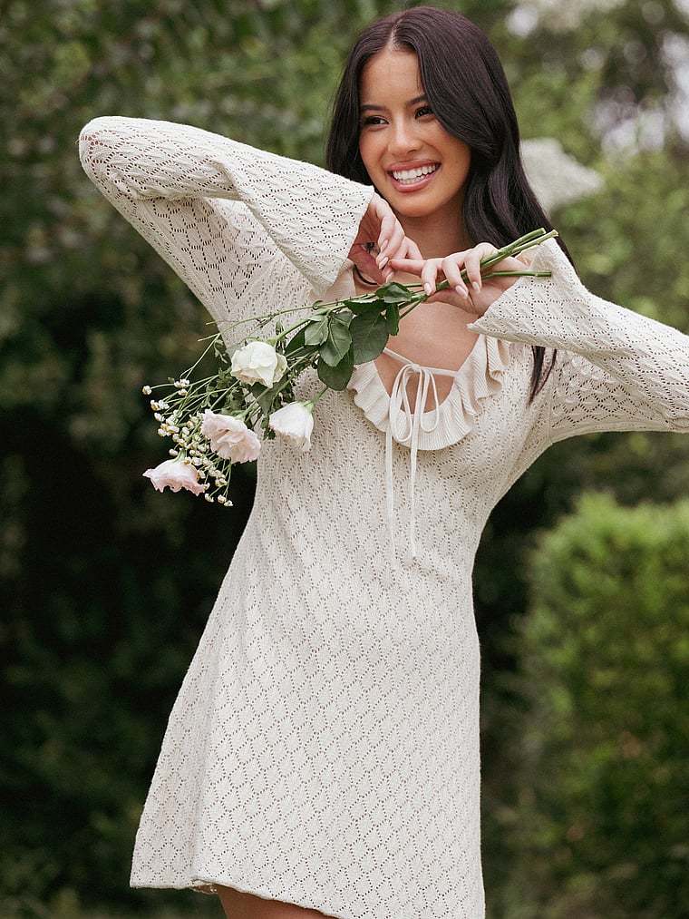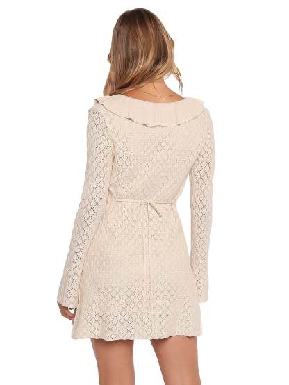 With a flattering V-neck and long sleeves, this mini dress is equal parts chic and comfortable. An adjustable tie-front detail provides the perfect fit.