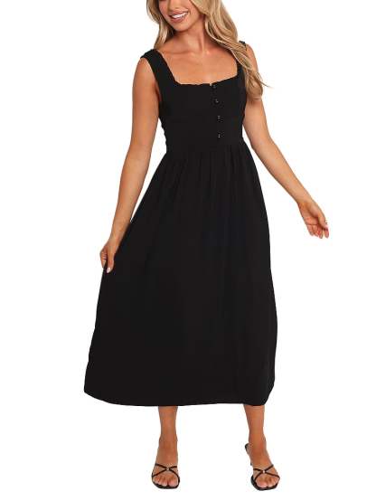 The essential your capsule collection needs. With a flattering square neckline and functional button-front detail, this midi is the dress-it-up-or-down, wear-it-anywhere-and-everywhere staple you’ll always be reaching for.