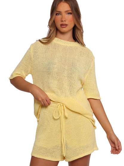 This two-piece set is your next summer style obsession. Perfect for beachy days or bonfire nights, it’s crafted from a delicate knit fabric in a bright pastel hue that will have you feeling instantly chic.