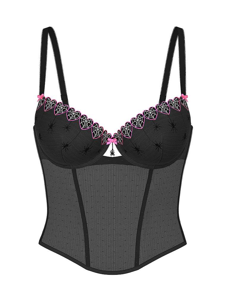 PINK Bralettes & Bra Tops WINK Lightly Lined Balconette Corset Top Spider Web Embroidery