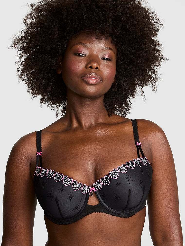PINK Wink Lightly Lined Balconette Bra Spider Web Embroidery