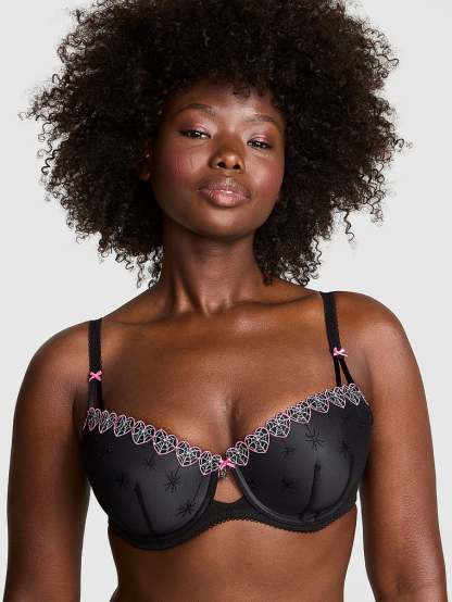 Light enough for daily wear and flirty enough to bring out your fun side, this balconette is a top-drawer essential that lifts and stays for a comfortable, chic fit. Plus, this fan fave creeps it real with scary cute embroidered deets and a hanging spider charm. Pair it with the matching Panty.