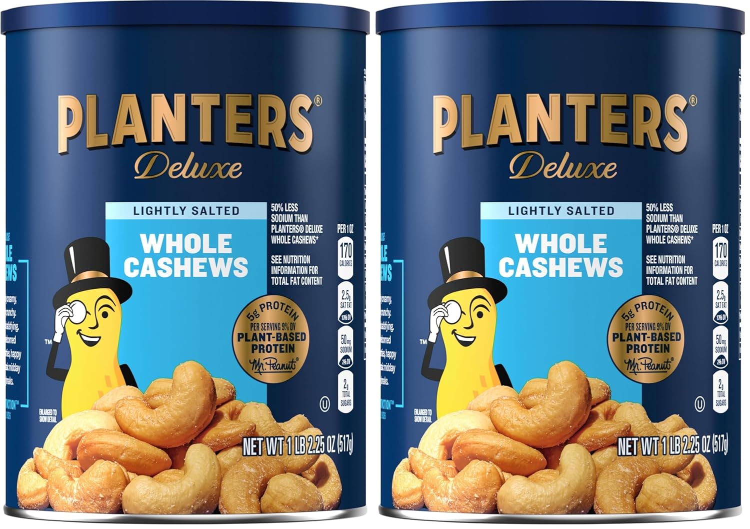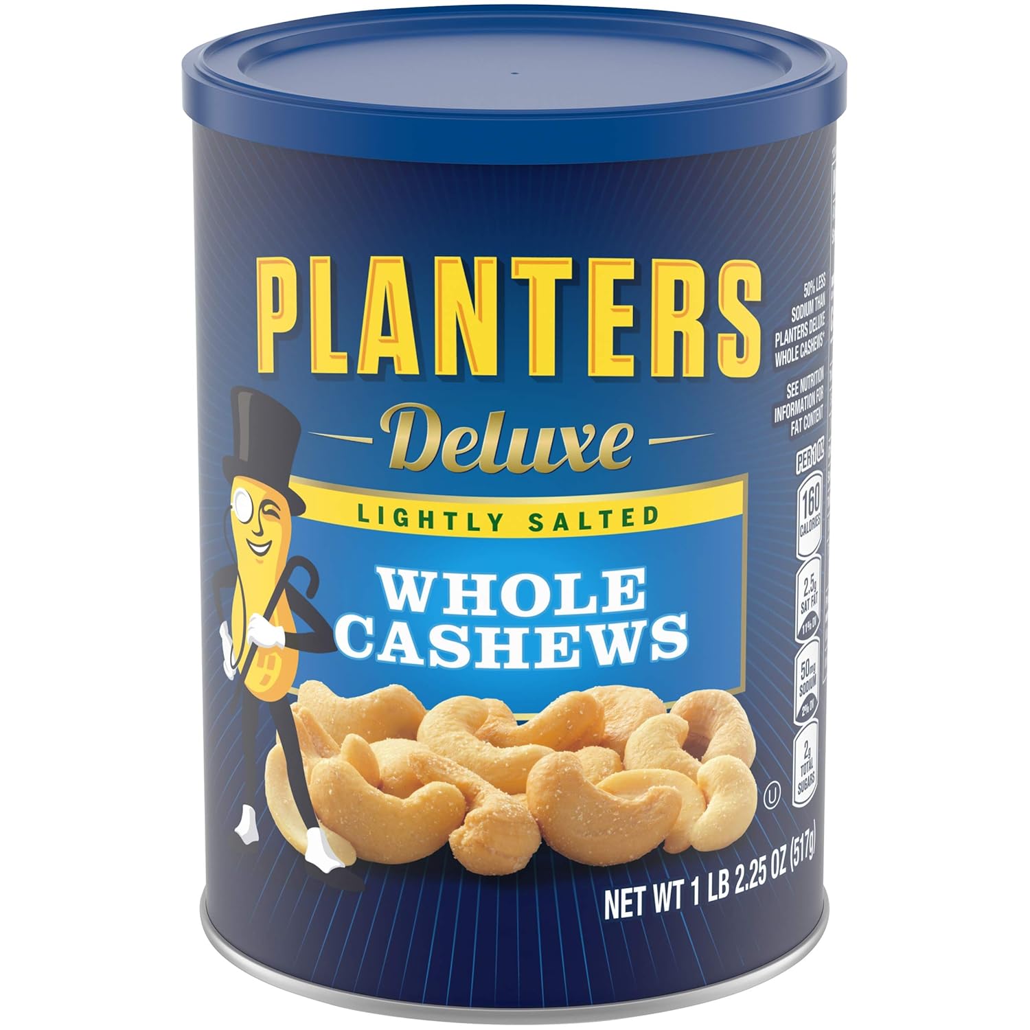 PLANTERS Deluxe Lightly Salted Cashews, Party Snacks, Plant-Based Protein, Quick Snack for Adults, After School Snack, Flavored with Sea Salt, Kosher, 1lb 2.25oz