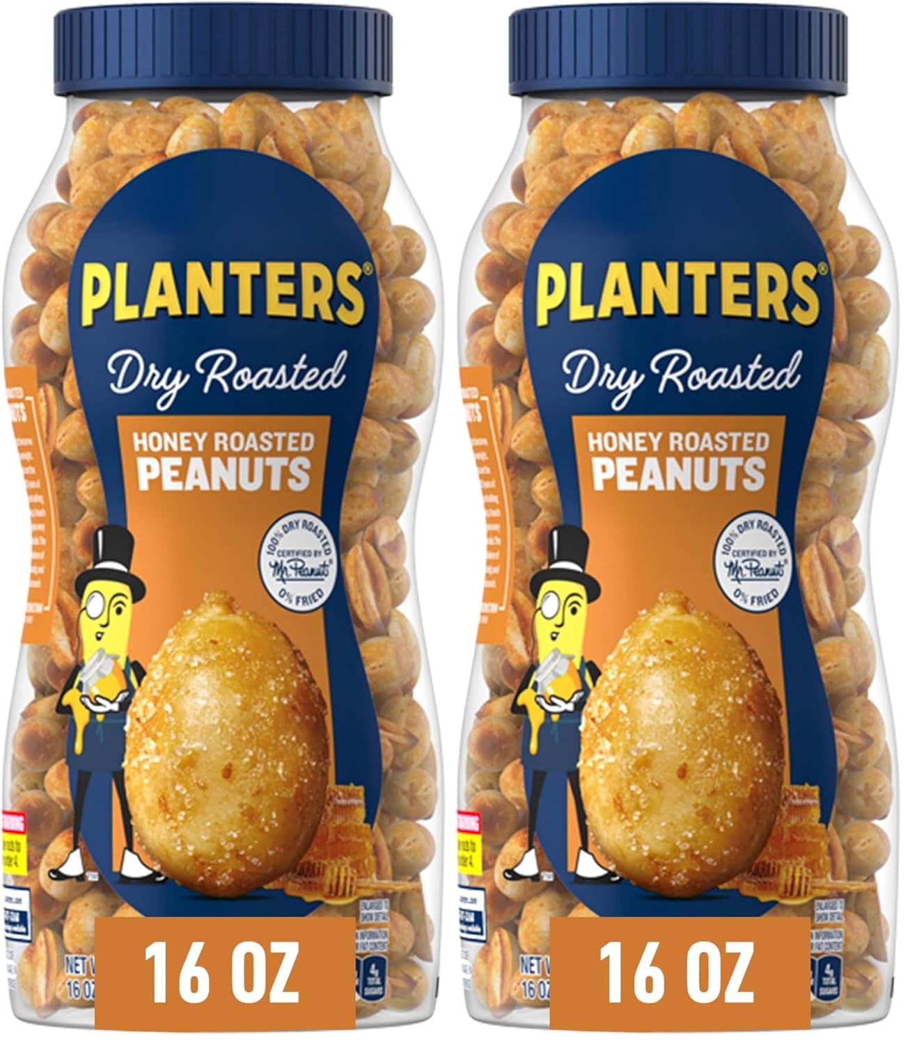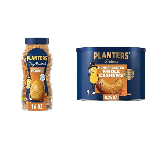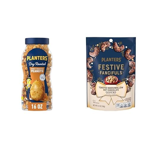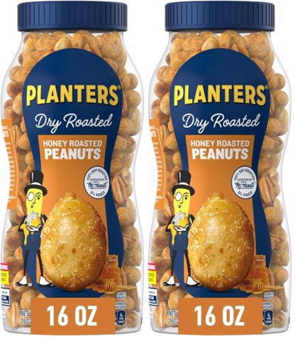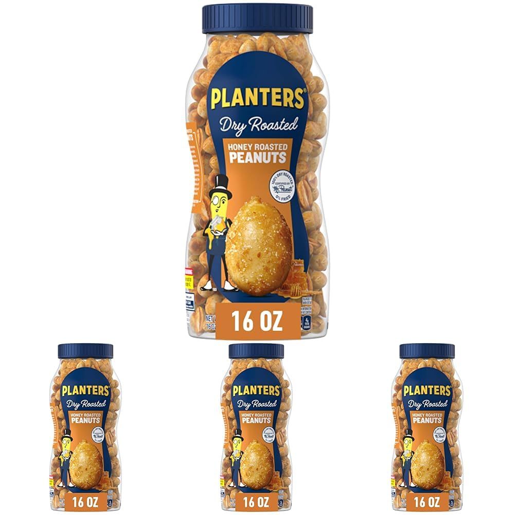 PLANTERS Honey Roasted Peanuts, Dry Roasted Peanuts, Party Snack, Plant-Based Protein, After School Snack, Sweet and Salty, Salted Nuts, Sea Salt & Honey, Snacks for Adults, Kosher, 16oz Jar