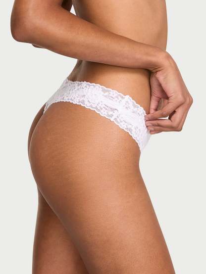 Crafted in a cool cotton blend with a subtle striped pattern, this Thong is trimmed all around with pretty lace and finished with a sweet, satin rosette.