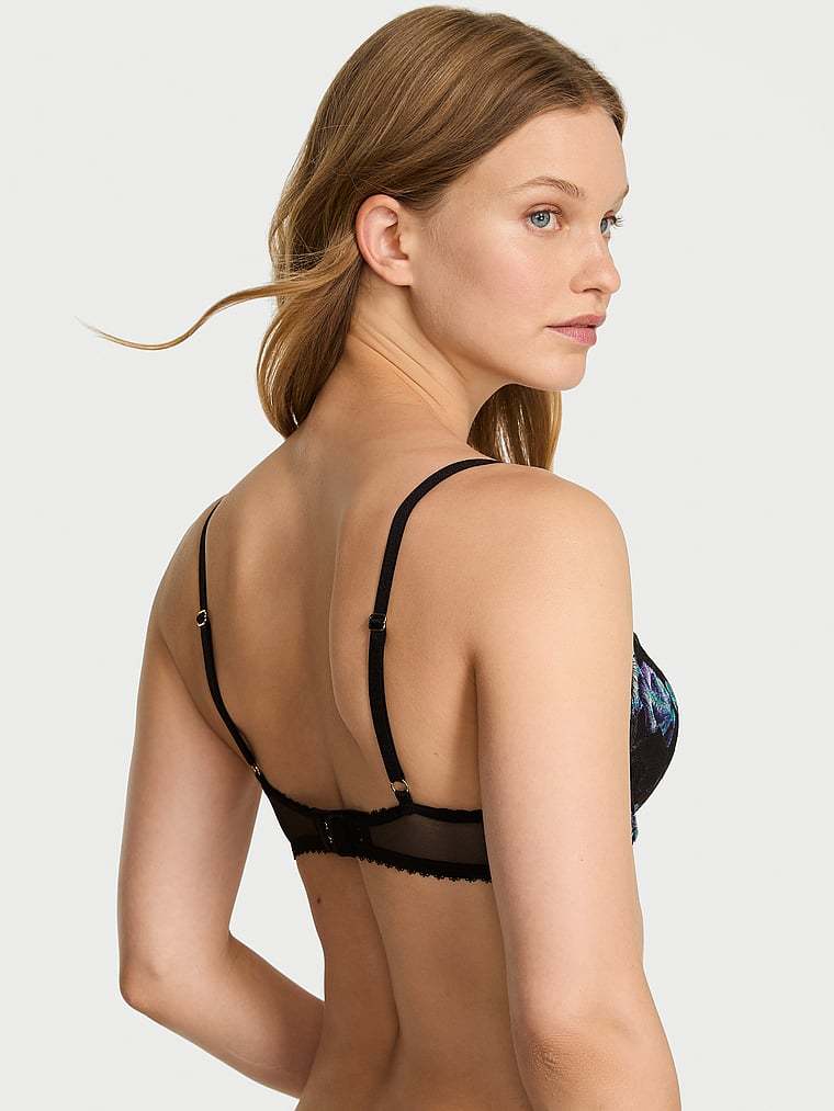 Richly hued, moody blooms are artfully embroidered on this modern, low-cut demi frame. It showcases your décolleté with its deep plunge neckline that's an ideal match for most revealing tops. The standout style is crafted with contoured, ultra-soft memory foam and smoothing sides to give you the perfect shape with every wear.