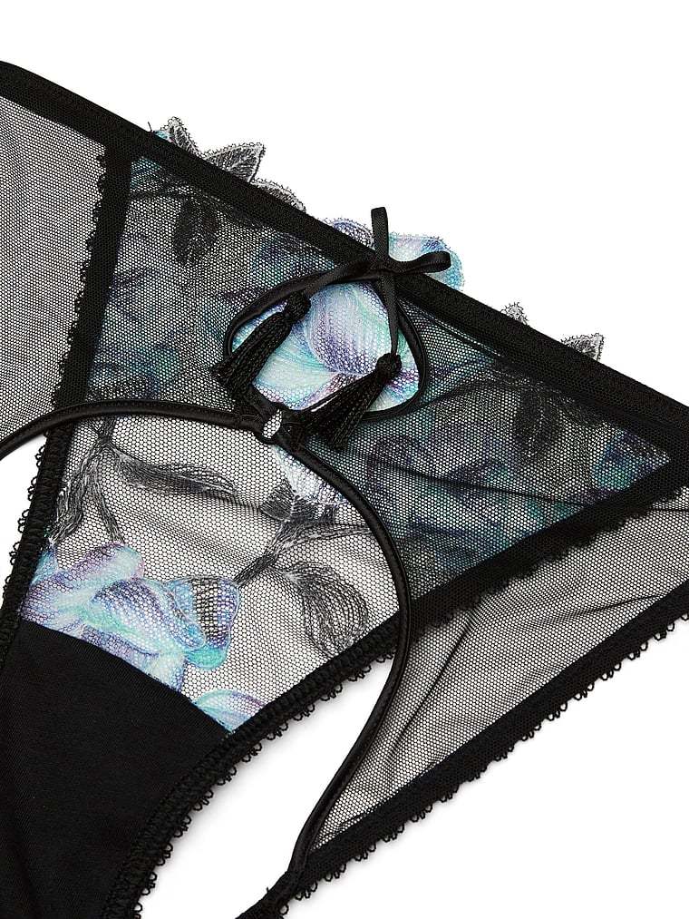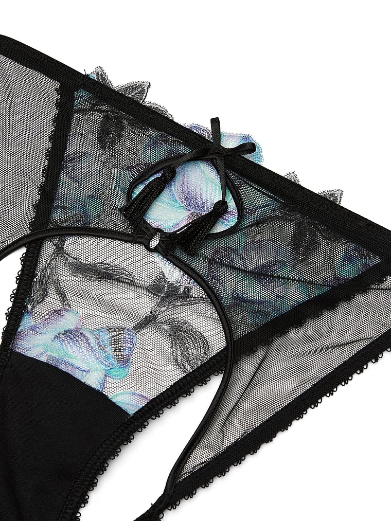 Richly hued, moody blooms are artfully embroidered on this ultra-sexy ouvert Panty. A dainty tasseled bow finishes the design.