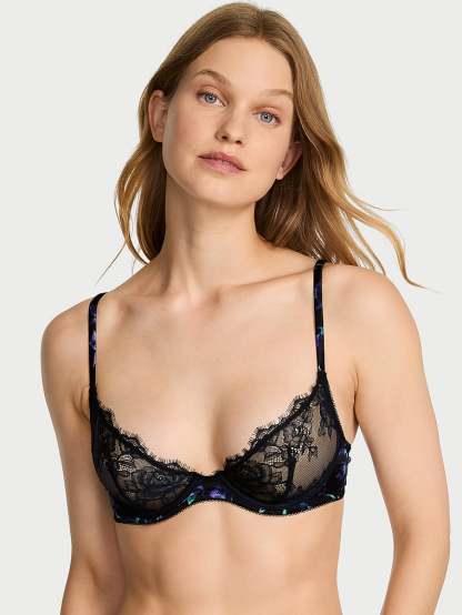 Very Sexy Rose Lace & Satin Unlined Plunge Demi Bra Lace