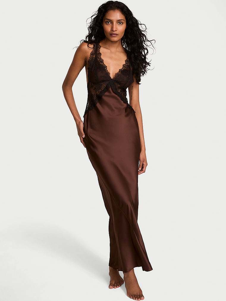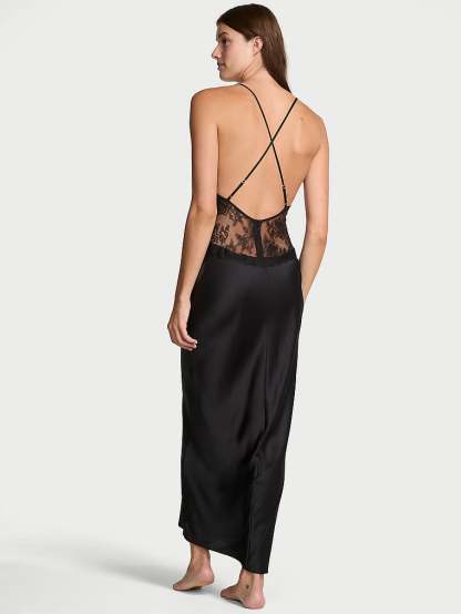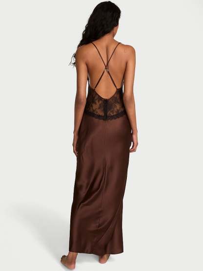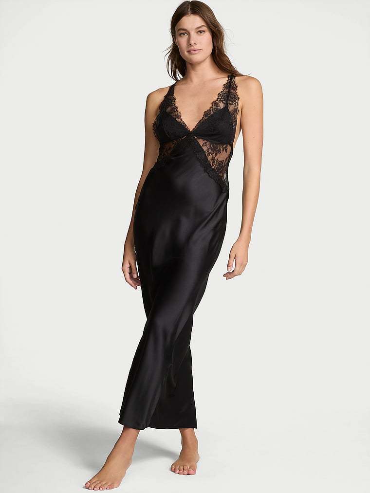 Bring the drama—and the glamour—in a length of lustrous satin paired with our luxe rose lace. The bias cut Slip skims your curves and chiffon-lined cups provide a tantalizing bit of coverage.