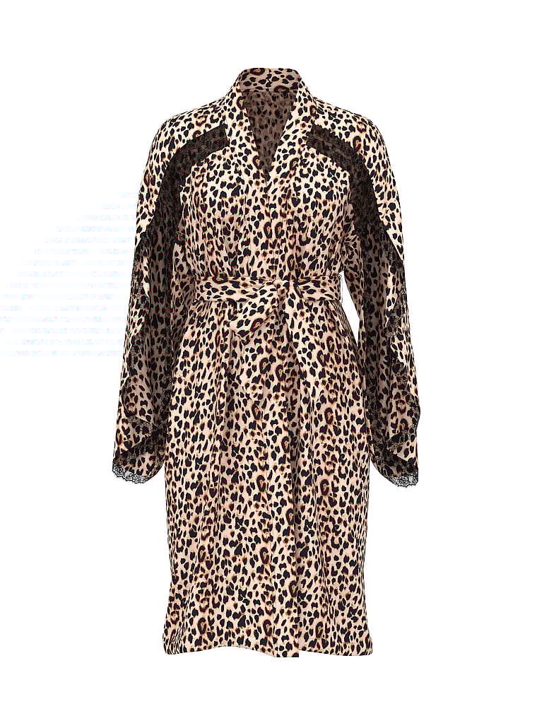 You'll love the details on this glossy satin Robe, like the dramatic surplice sleeves and luxe, rose-lace details. Wear with the matching Mini Slip to get the complete, glamorous look.