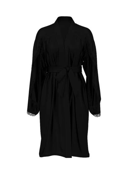 Very Sexy Satin Rose Lace-Trim Midi Robe