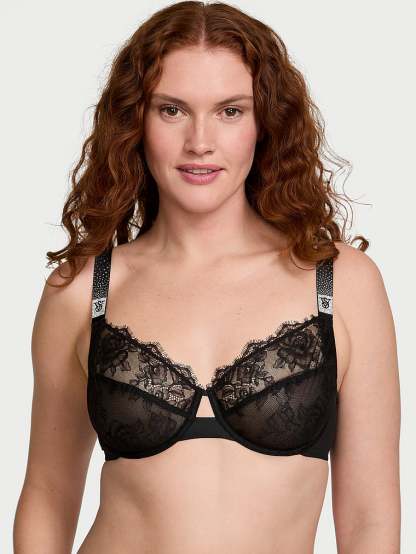 A rose motif adorns this romantic lace Bra, featuring a 3-piece construction that provides extra support and coverage for larger cup sizes. It now twinkles with a fresh take on our signature shine straps—a sprinkle of rhinestones finished with our distinctive logo.