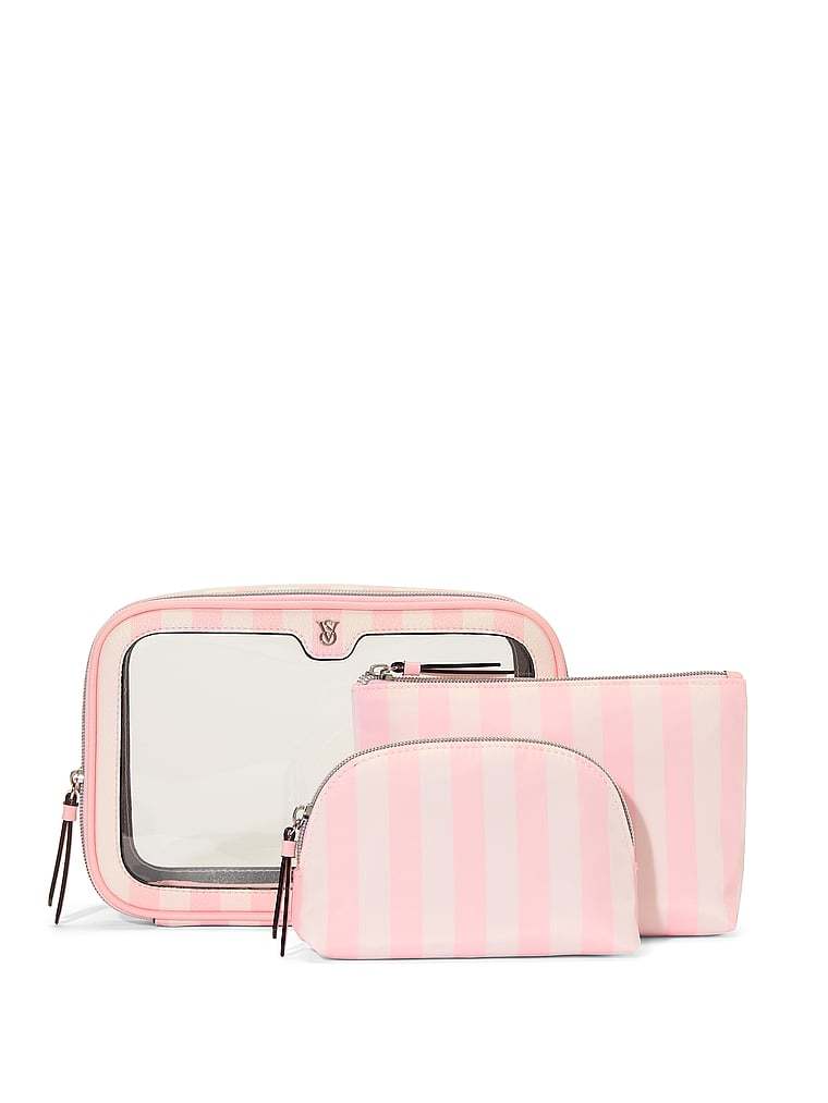 Triple the glam. This iconic stripe trio fits everything you could ever need. Together or separate, the clear exterior to helps you quickly find what you’re looking for.