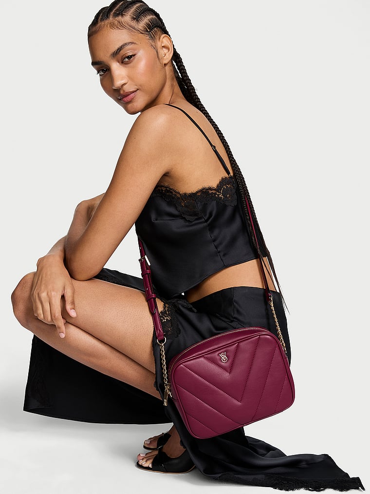 Our signature V-quilt pattern pairs perfectly with a chain-detailed strap. This softly structured crossbody is finished with a sleek top zip for easy access to phone and essentials.