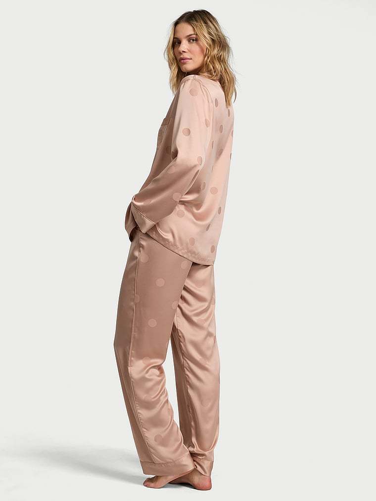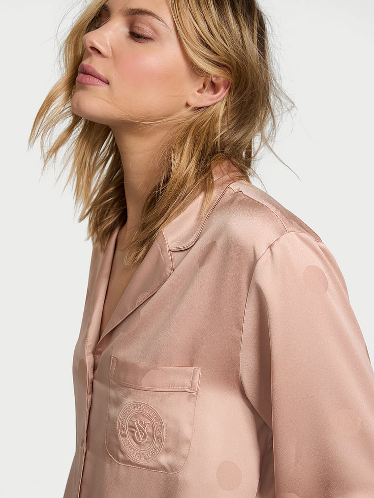 Our customer-favorite satin PJs are beloved for their enduring comfort and luxurious look and feel. Gorgeous colors and patterns, like this jacquard dot, liven up your Pajama collection. Lounging and sleeping never felt so indulgent.