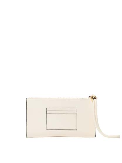 This compact clutch features a top zip and wristlet strap for ease-of-use. Crafted with smooth faux leather and refined stud detailing for an elevated take on an everyday classic.