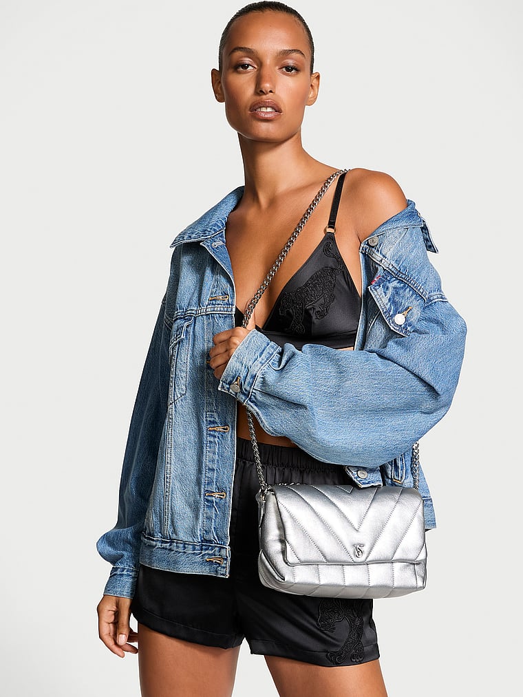 In a stylish quilted finish with VS monogram hardware, this chic and structured bag features a jewelry-like chain strap that goes from shoulder to crossbody with ease.