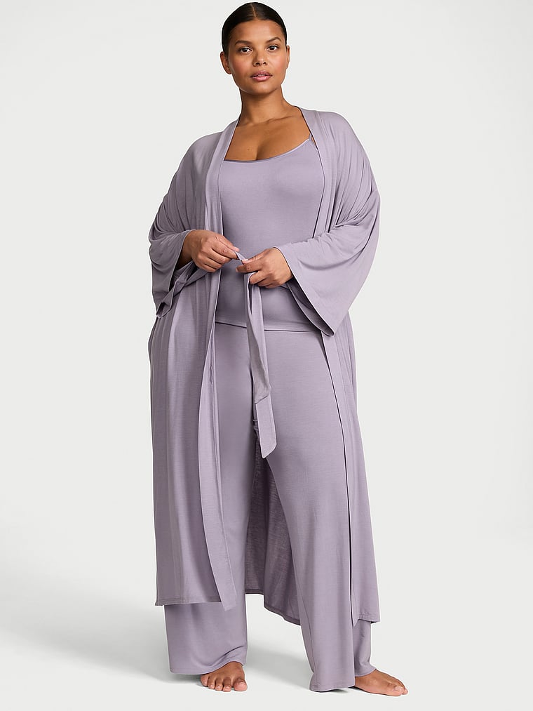We've upgraded your downtime with this easy modal set. Featuring a long robe with self-tie waist, a comfy cami, and matching pants.