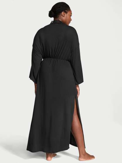 Crafted in our buttery, ribbed modal that's impossibly soft and traced in lace, this Robe is a self-care essential. The sweeping style features a drawstring tie front for a perfect fit. Make it a match with the Ribbed Modal Lace-Trim Long Slip.