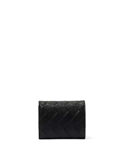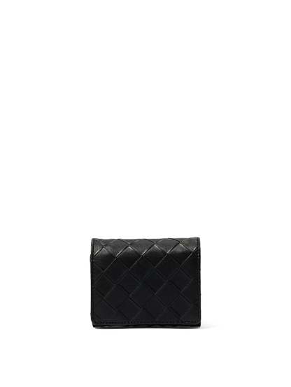 Just the necessities. This small tri-fold wallet includes interior slot pockets plus a center zip pouch for coins and other small items. Featuring woven faux leather for intricate, sophisticated style.